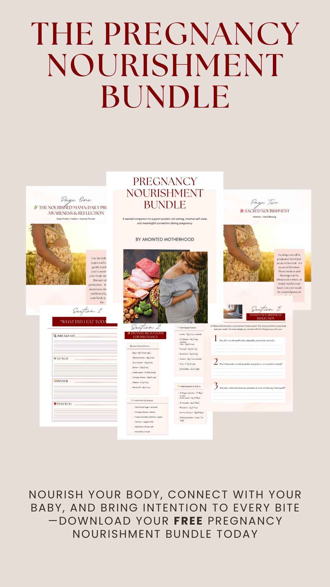 An 11-page downloadable guide to help you nourish your body and baby with intention and grace, focusing on the importance of protein.